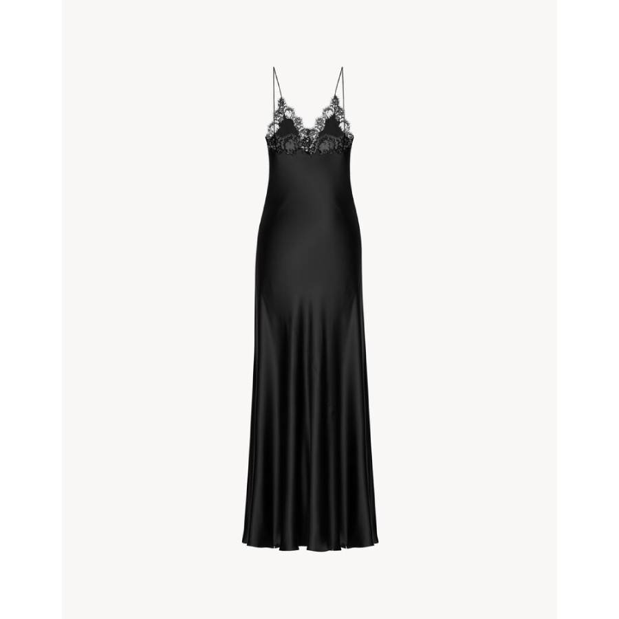 slip dress in silk satin and lace