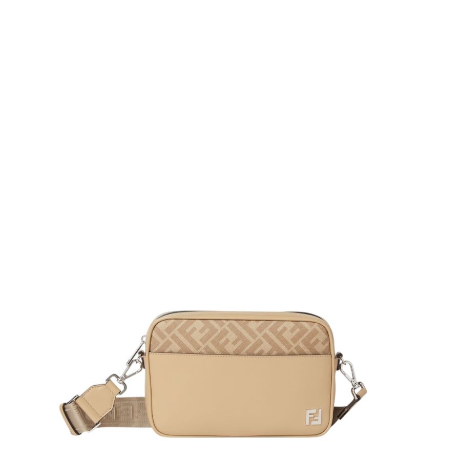 Squared FF Camera Case Beige leather and FF Canvas bag