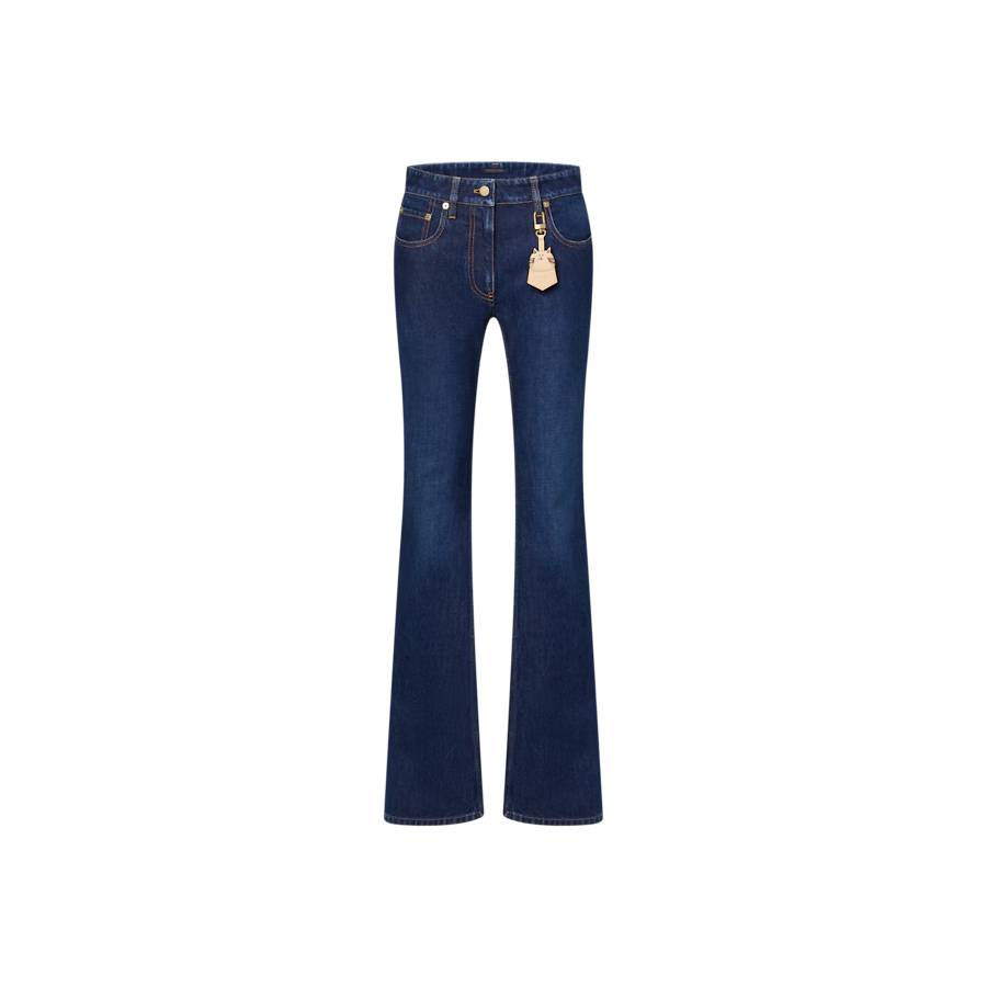 These mid-rise jeans are an enduring staple in a clean-cut straight shape. They are crafted from cotton denim in a casual washed finish detailed with contrasting yellow topstitching for a timeless structured feel. A cat-shaped keybell embellishment completes the look with a whimsical signature from the Travels with Grace Coddington collaboration.