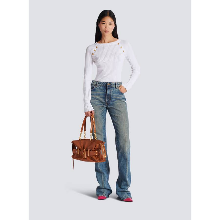 • PB embroidery on the back pocket and printed leather Balmain Paris patch