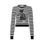 Home Women Clothes T-Shirts & Tops Striped Round Neck Pullover Teddy