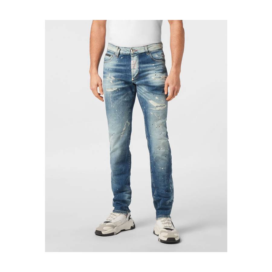 ● Used effect denim with rips