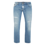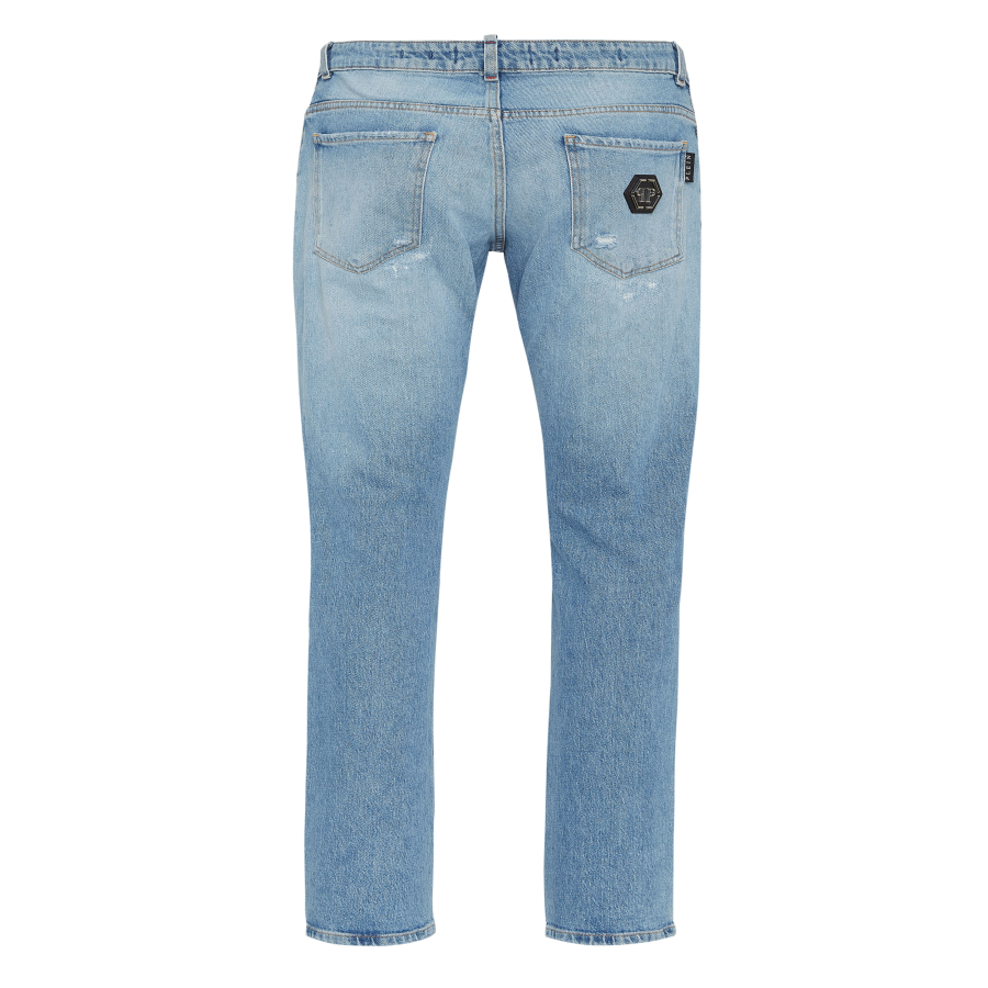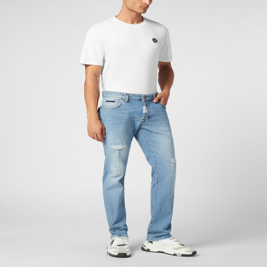 ● Stone washed denim with wear-and-tear