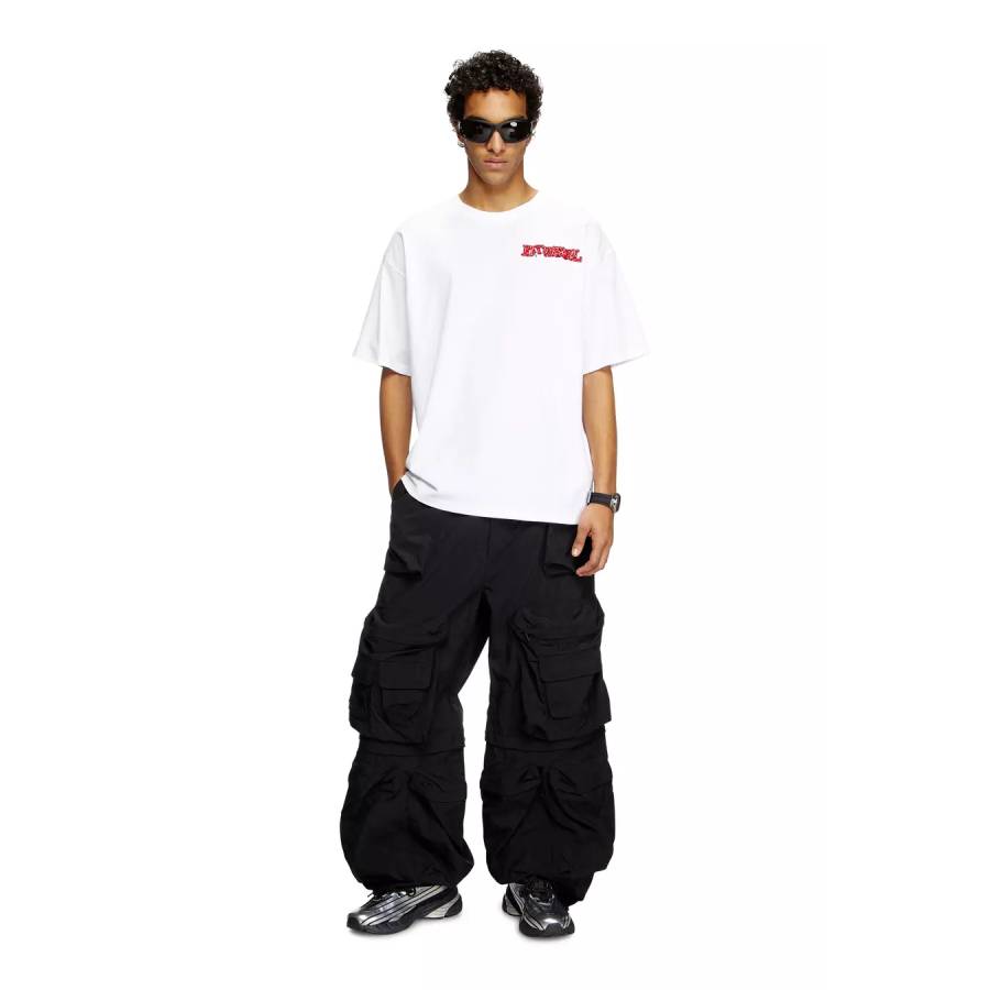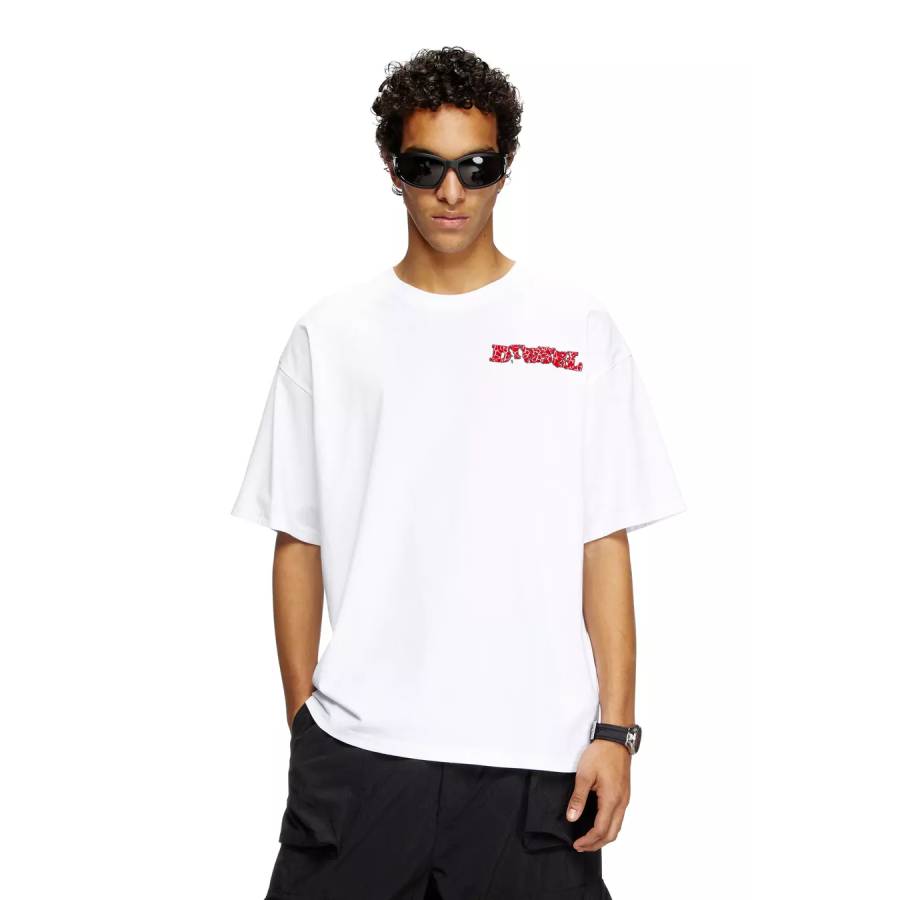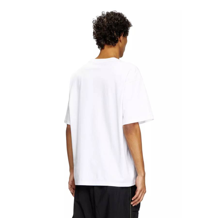 Mens T-shirt in organic cotton jersey, designed for a relaxed, slightly boxy fit. The graphic version of the Diesel logo on the front is made using a combination of printing techniques, so it feels tactile and puffy.