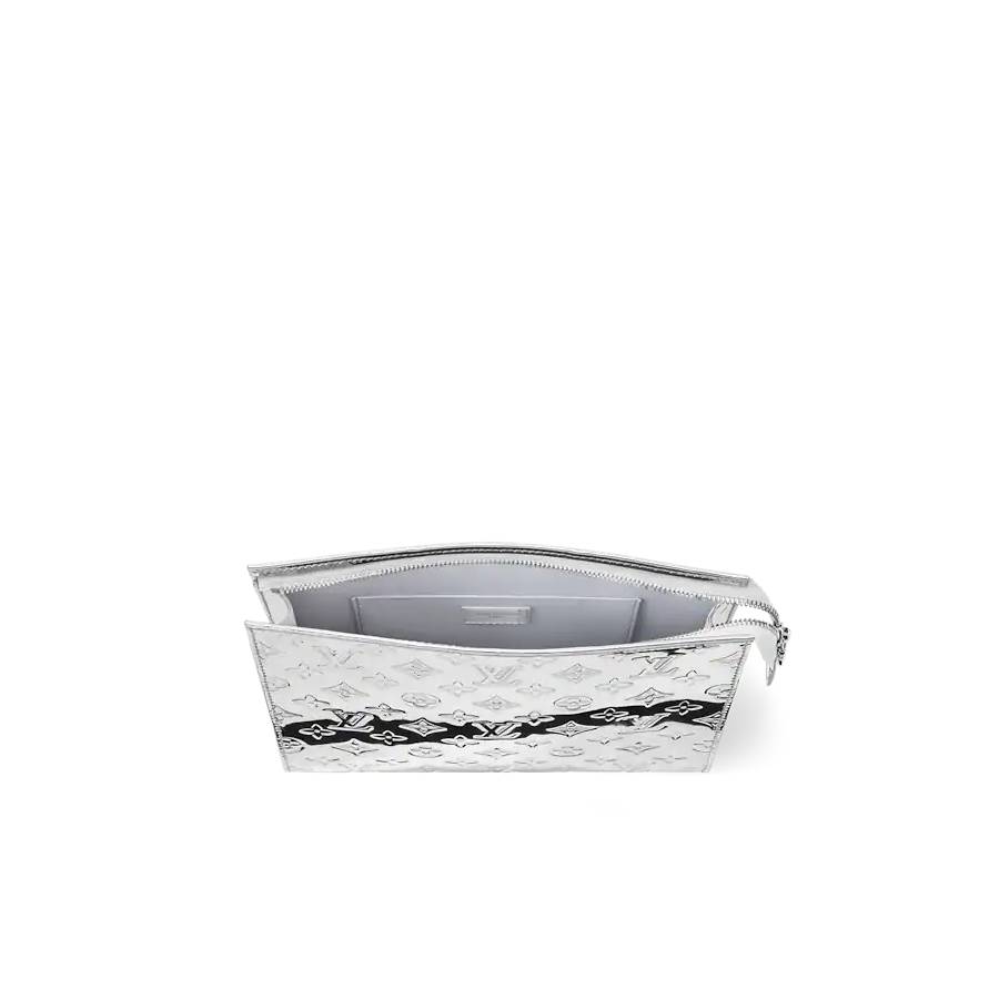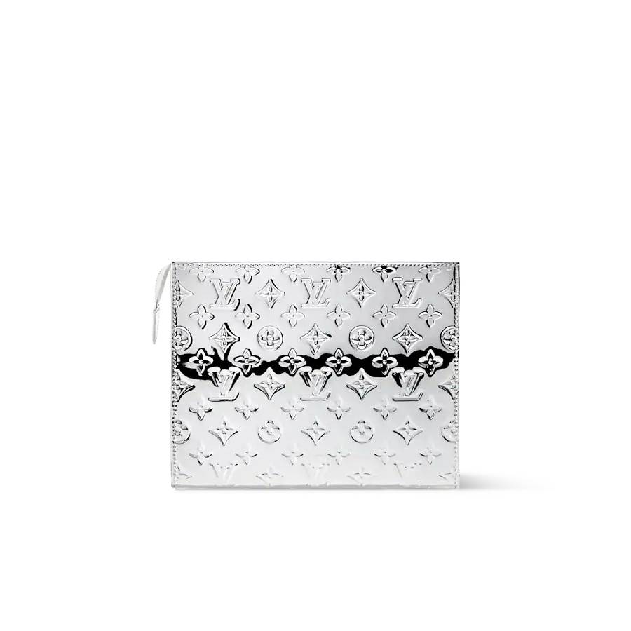 Inspired by the metallic trunks Louis Vuitton produced in the 19th century, this Toilet Pouch is made from Monogram Miroir coated canvas. The canvas is durable, thanks to an additional laminate layer. The interior features a washable gray textile lining and two pockets to help keep essentials neatly organized.