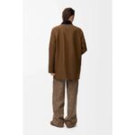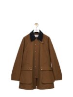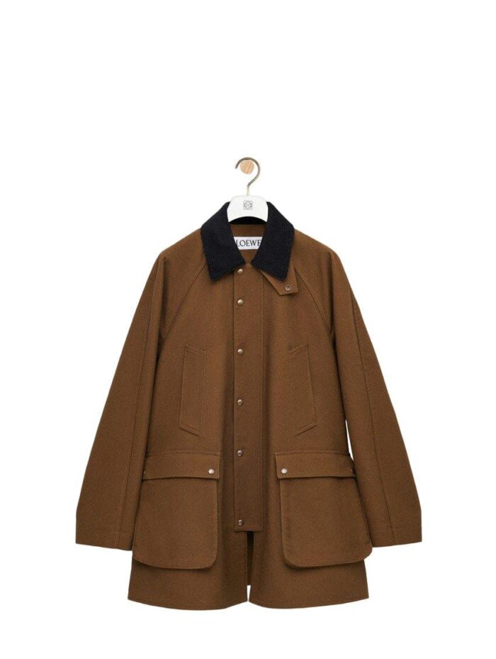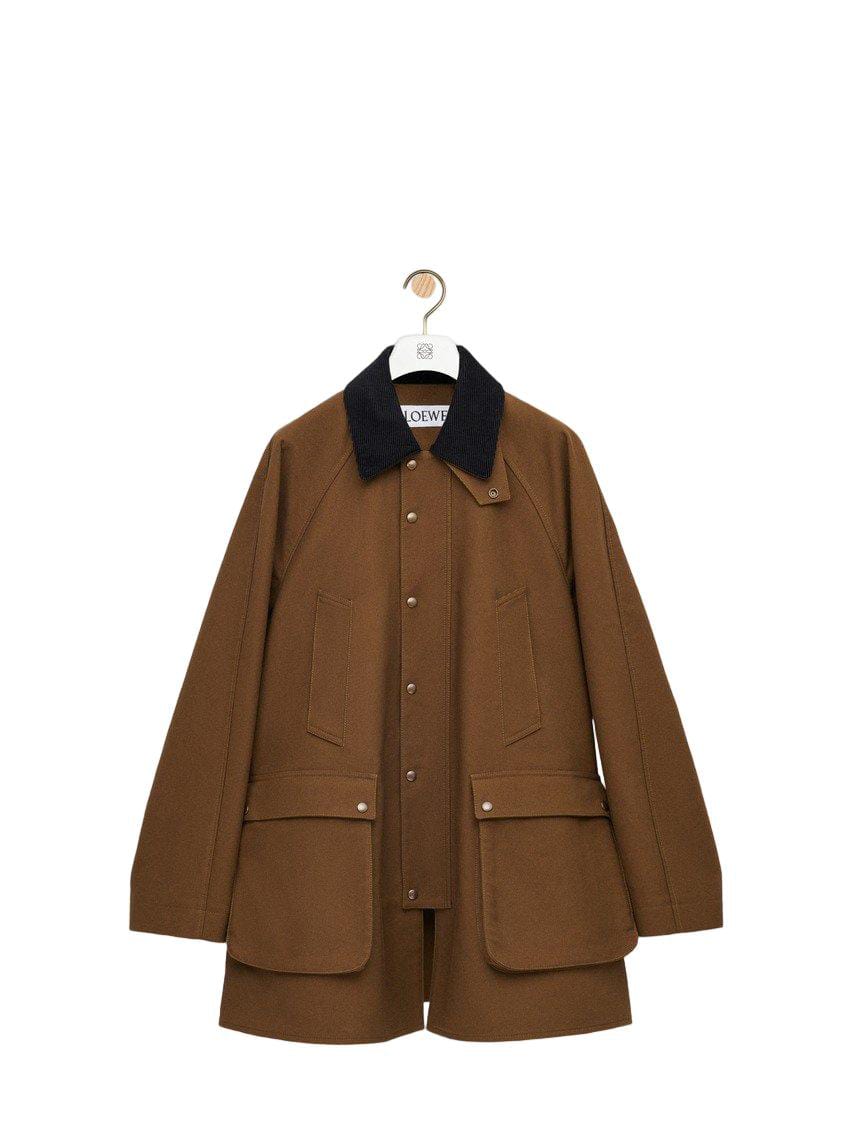 Jacket in medium-weight textured compact cotton drill featuring a trapeze silhouette and a contrast corduroy collar.