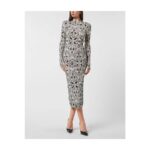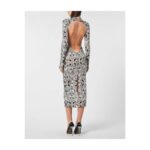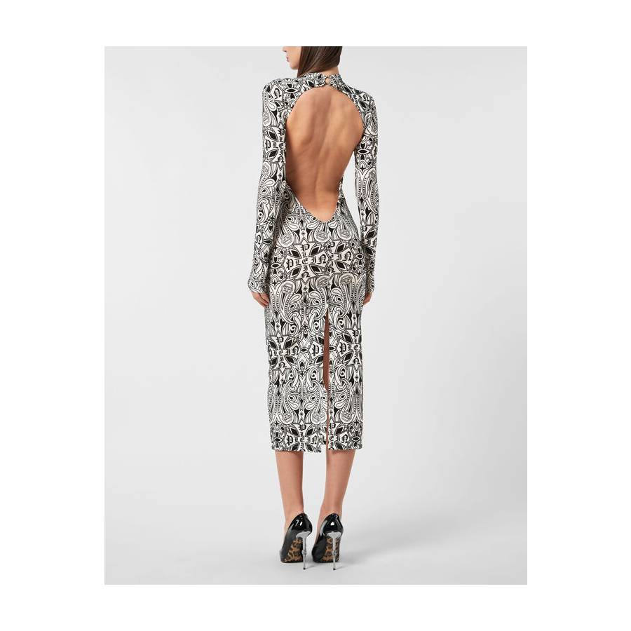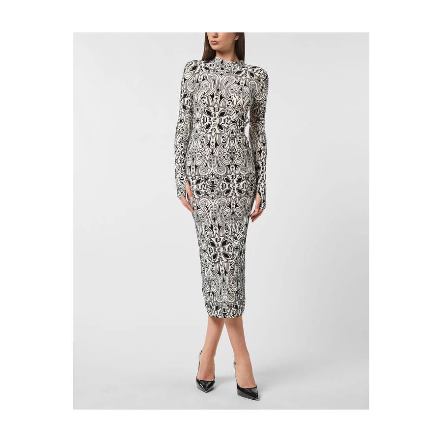 If you like the glam look, we suggest this midi dress that plays with contrasting effects. Discover the attention to detail.