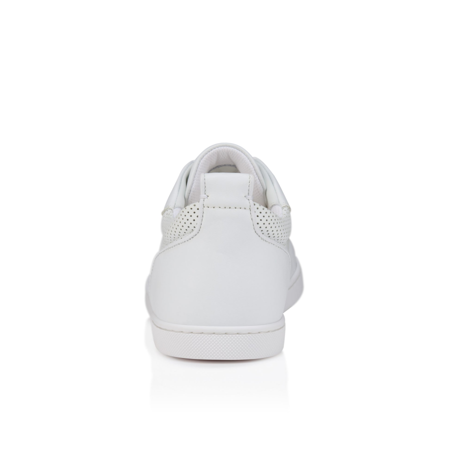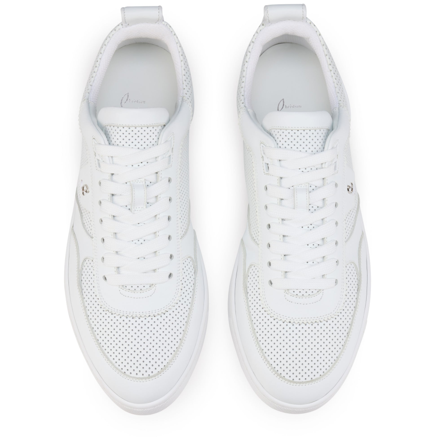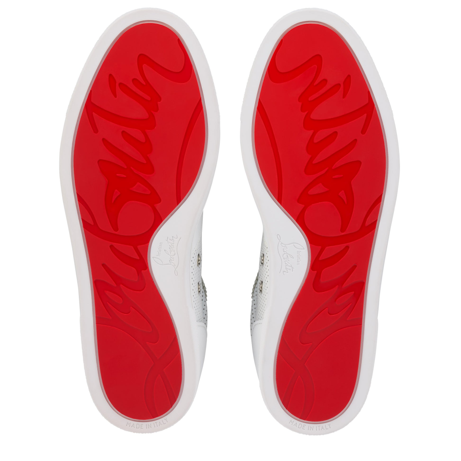 With its more supple construction, the Tutti Rui men’s low-top trainer stands out for its modern style. This model is crafted entirely in white leather and finished in tone-on-tone nappa leather. Featuring a lace-up top and a heel loop, it is embellished with the Maison Christian Louboutin signature CL logo.