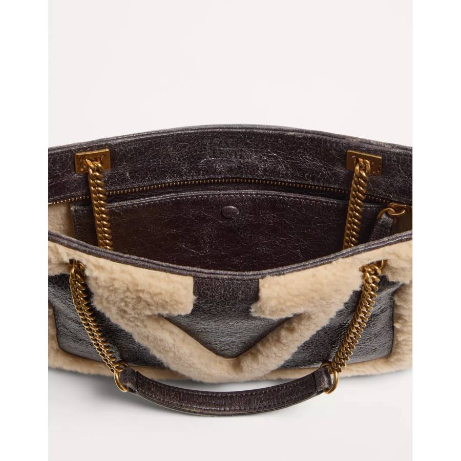 Valentino Garavani Viva Superstar small sheepskin shopping bag. The bag features a contrasting maxi VLogo Signature and can be worn over the shoulder or crossbody thanks to the sliding chain.