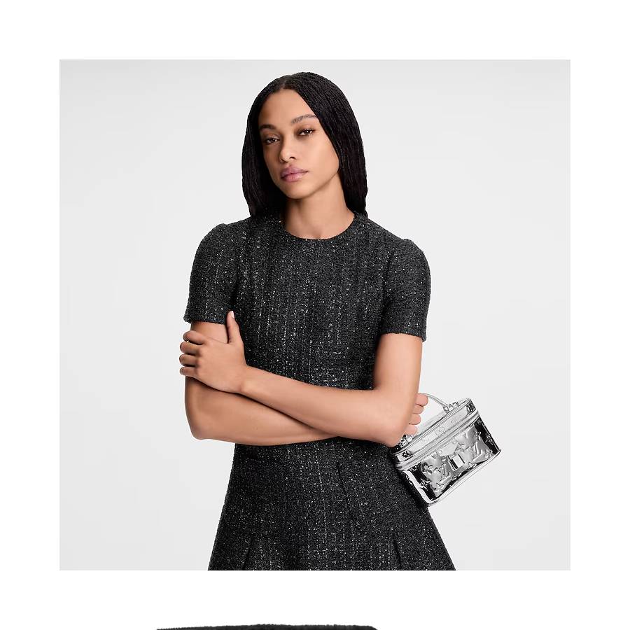Inspired by traditional Louis Vuitton cases, this Vanity Chain Pouch embodies the House’s spirit of travel. Part of the LV Ski collection, it is crafted from Monogram Miroir canvas in a chic silver palette and features a matching signature LV-engraved padlock. The functional design includes a removable strap and chain, and is sized to fit essential items, such as a small coin purse and sunglasses.