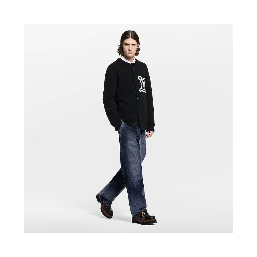 These dark blue pants are meticulously crafted from velvety flocked denim which has been overdyed and given a wax treatment inspired by British country apparel, resulting in a rich vintage patina. A Monogram motif embellishes two rear flap pockets, while a leather Damier jacqueron signs the waist. Pair with a matching jacket for a sophisticated twist on an urban silhouette.