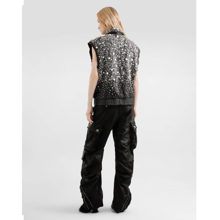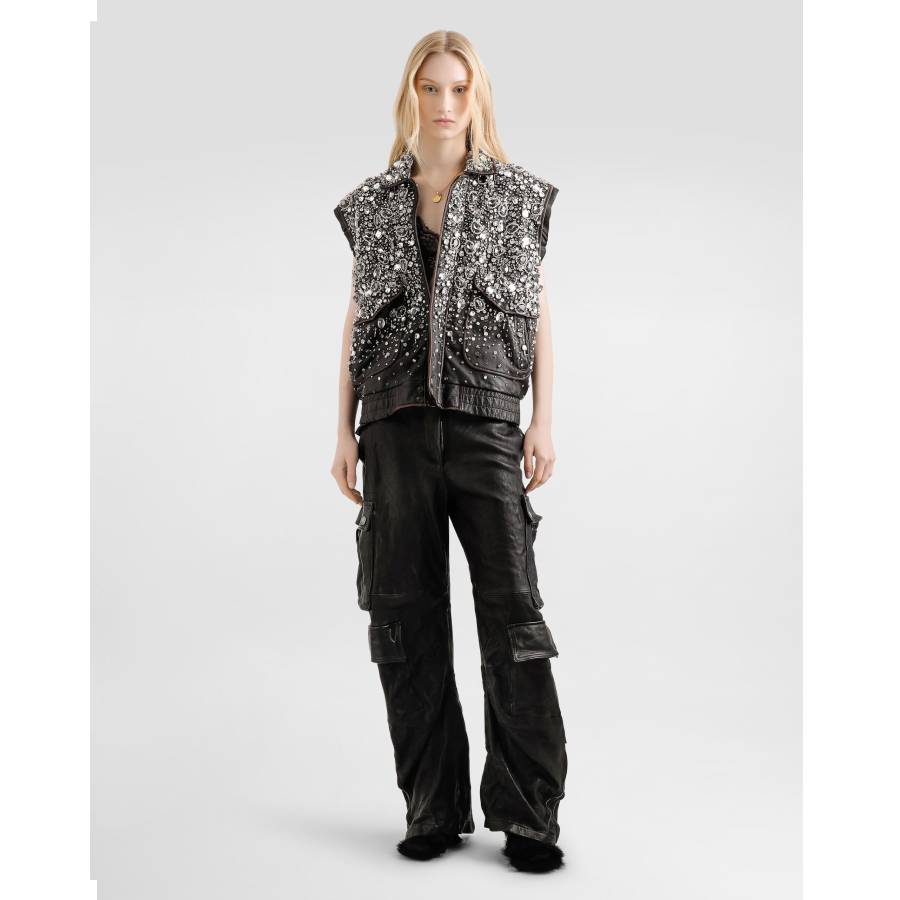 In the Fall/Winter 2025 Fashion Show Collection, shearling jackets, in fur-free versions, reveal slip dresses and create contrast’ plays while denim welcomes fabric or Leo print inserts. Sweatshirts are the result of long experimentation with volumes. Evening looks become precious thanks to dresses with special embroideries and luminous touches of sequins and crystals. Sheepskin inserts also unite hats, shoes, and bags, including those with pockets.