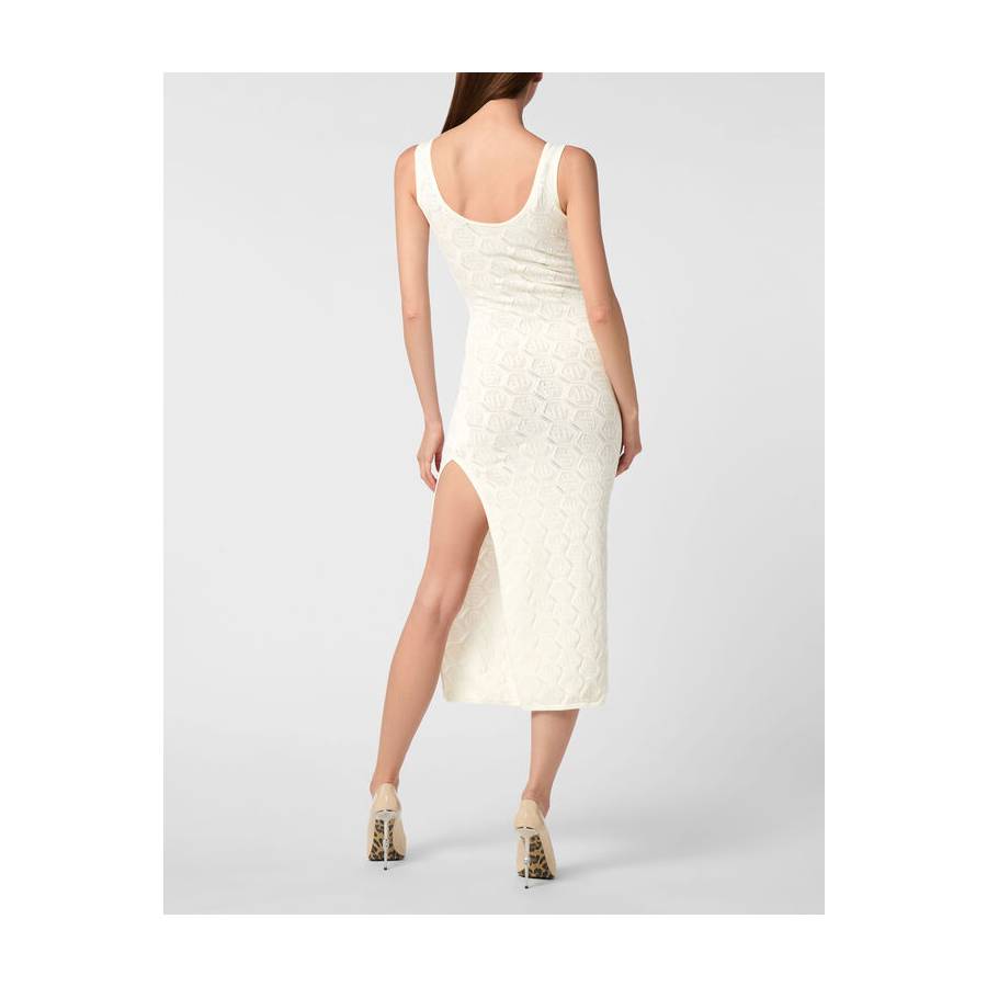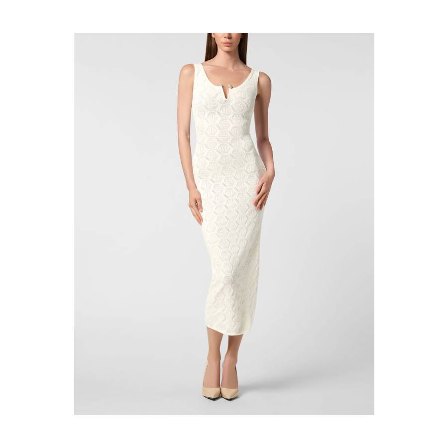Upgrade your elegance for special times and choose this knit longuette dress. Check out the details.