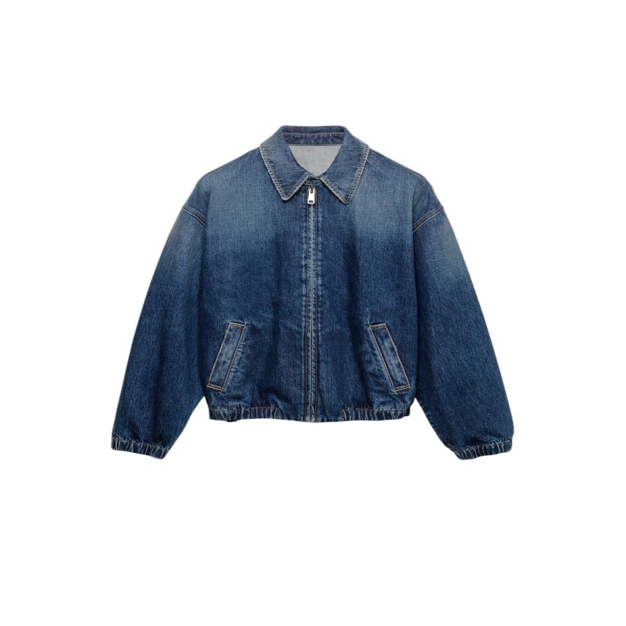Washed denim blouson jacket