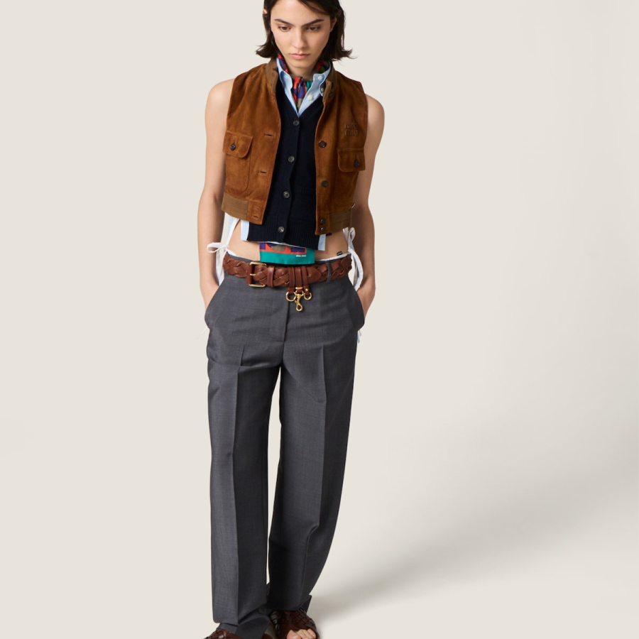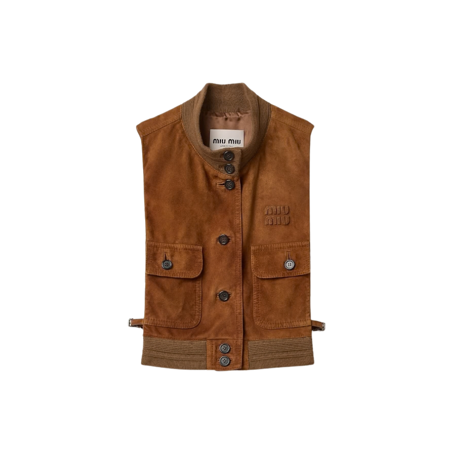 This suede leather vest reinterprets vintage menswear through a refined texture, enhanced by a hand-applied waxing treatment, and side openings designed for new layering possibilities with a contemporary character.