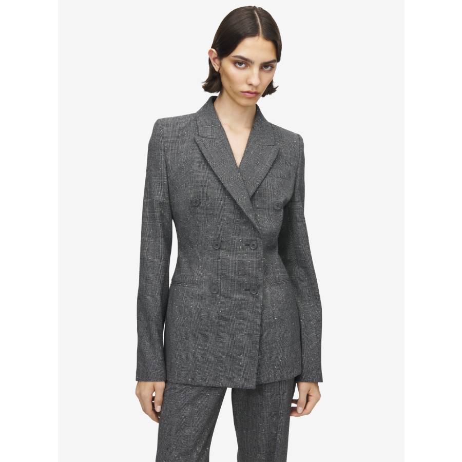 Women’s Flecked Glen Check Double-breasted Jacket in Black/Ivory