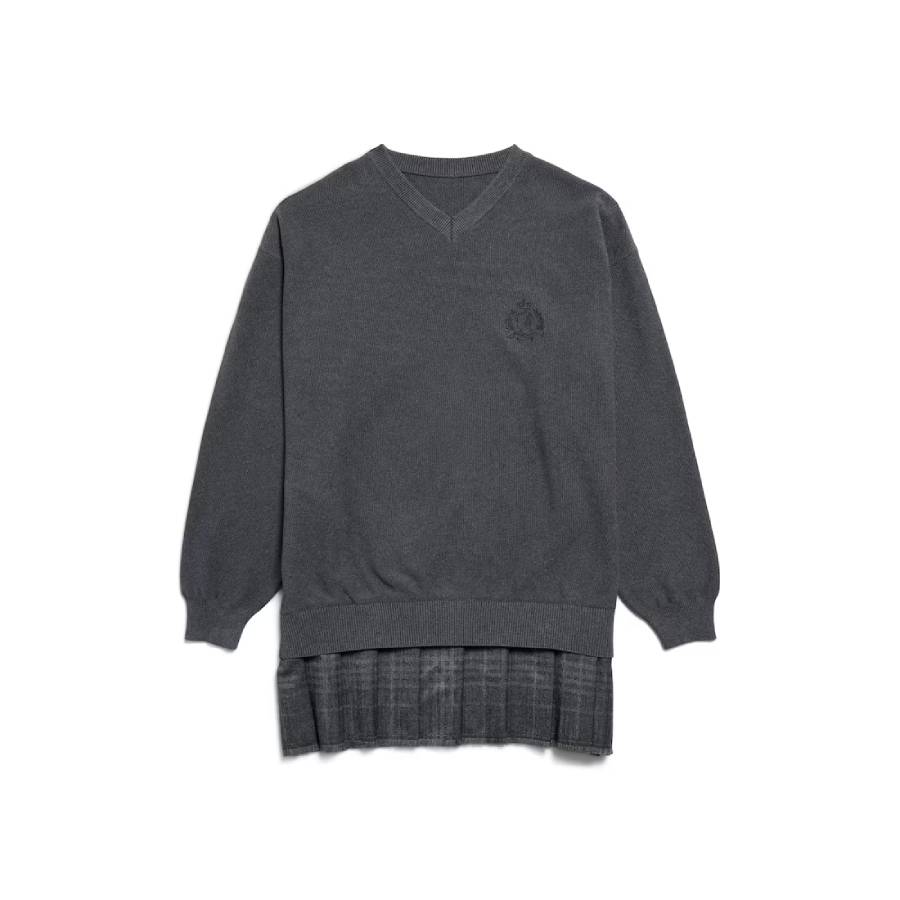 • Trompe l’Å“il construction, layered: Sweater on pleated mini skirt