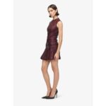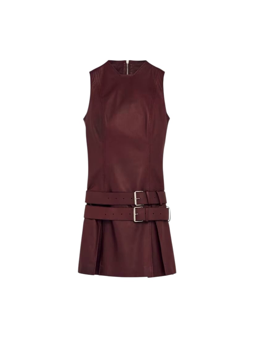 Women’s Leather Double Belt Mini Dress in Dark Red