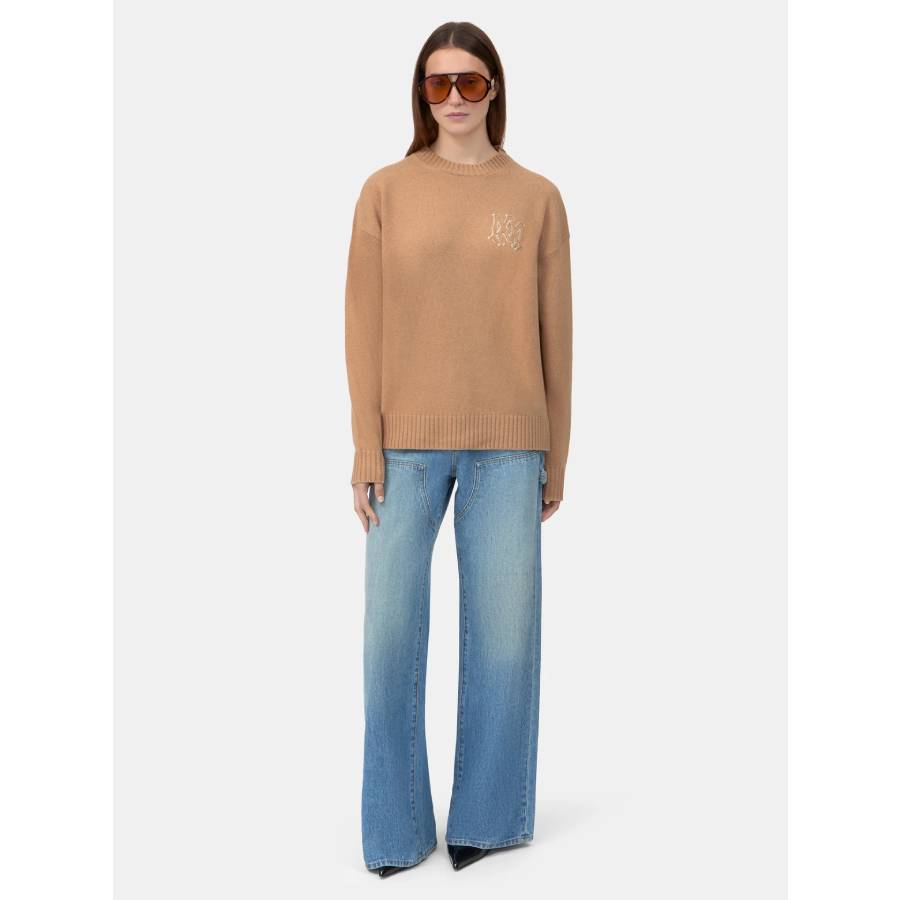 Pre-Spring 2026 introduces plush virgin wool knits illustrated with house signature visuals. The MA Appliqué Sweater in virgin wool is designed in a relaxed fit and finished with fine rib accents and logo appliqué on front and back.