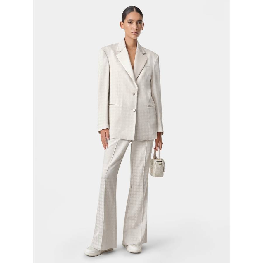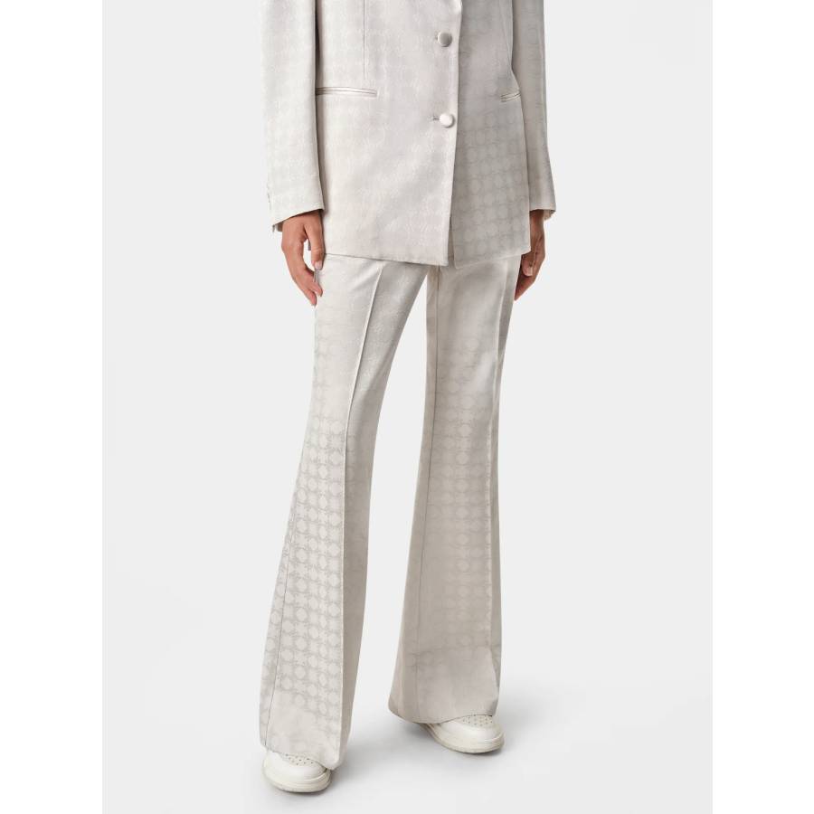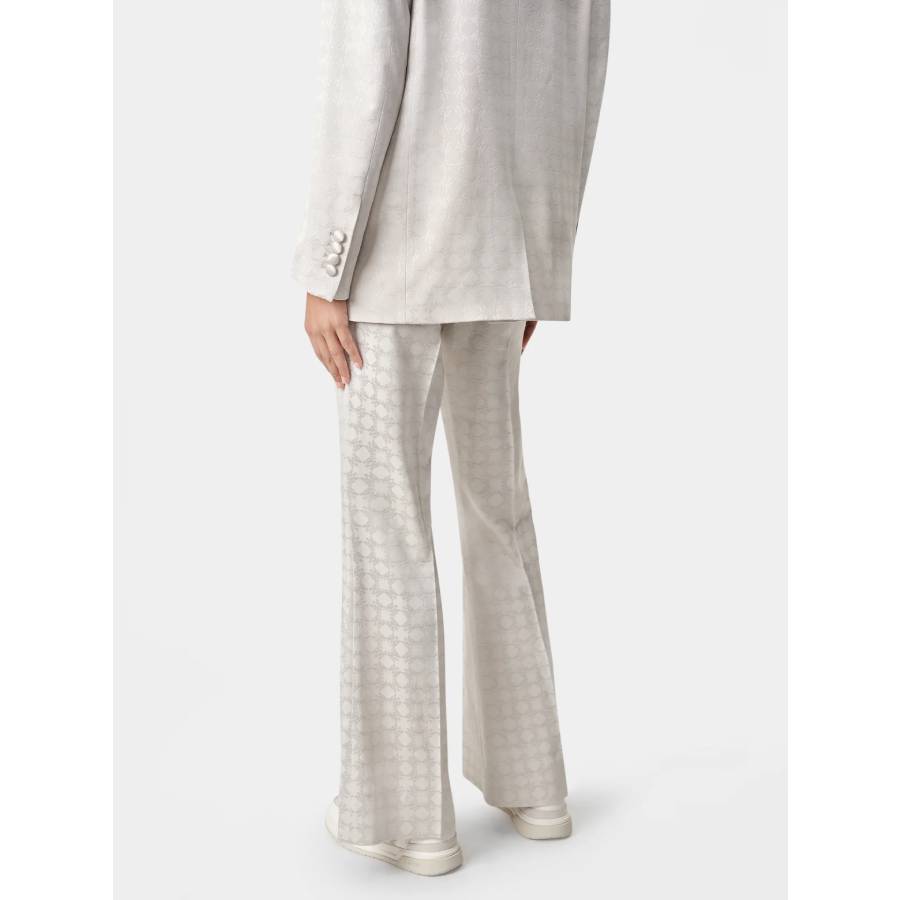 Autumn-Winter 2024 presents mid-century suiting silhouettes infused with the MA Quad monogram, a new house signature. The MA Quad Kick Flare is designed in custom-woven MA Quad monogram print wool blend and cut in the house’s signature flare silhouette with side seam pockets and concealed hook-and-zip closure.