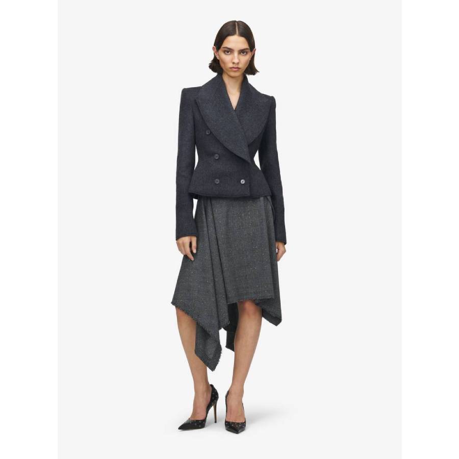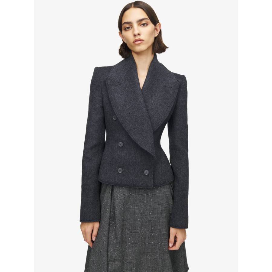 Women’s Wool Felt Double-breasted Coat in Grey Melange