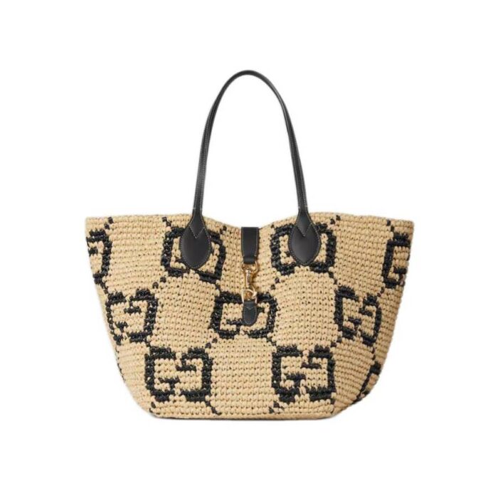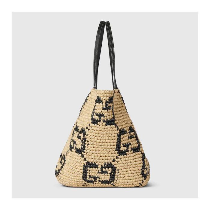 - Natural and black GG raffia-effect fabric